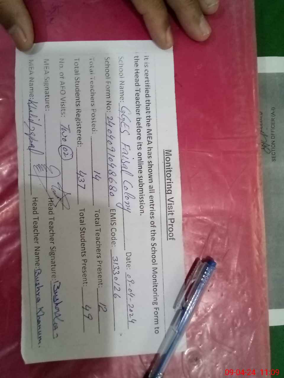 | EMIS Code: 31330126 | Name of School: GGES FAISAL COLONY | |||