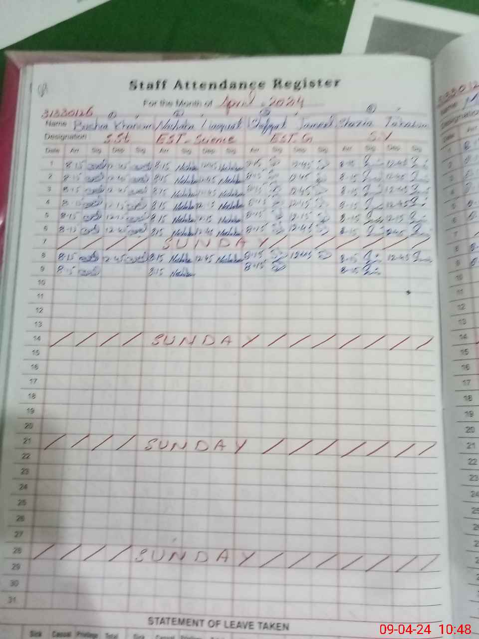 | 31**** | Ya**** Ba**** | PST | Regular | 2 | 0 | 0 | 0 | 0 | 0 | 0 | 0 | 2 | Casual |