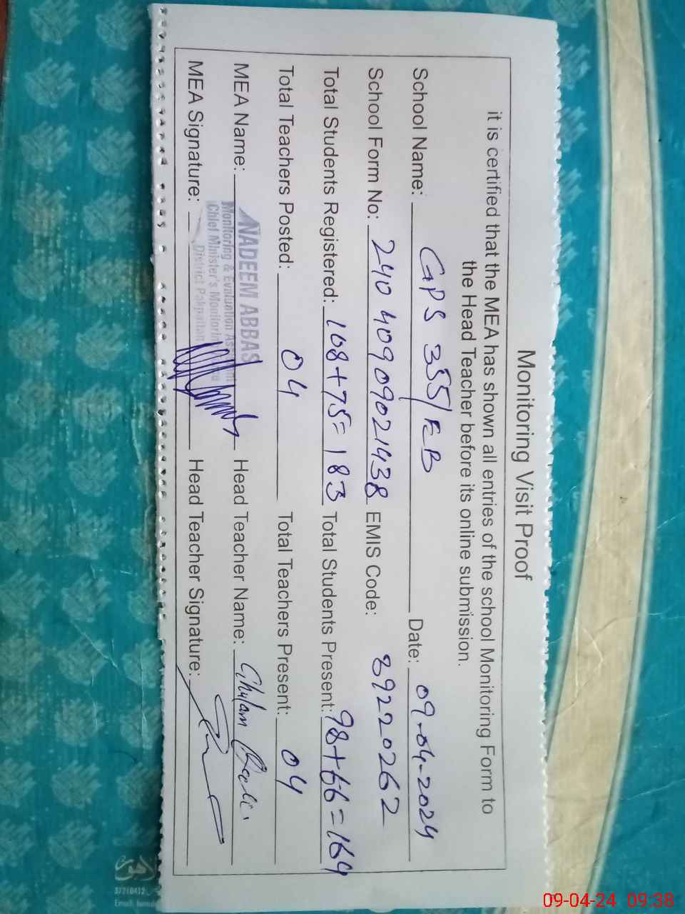 | EMIS Code: 39220262 | Name of School: GPS 355 EB P.O 351 EB | |||
