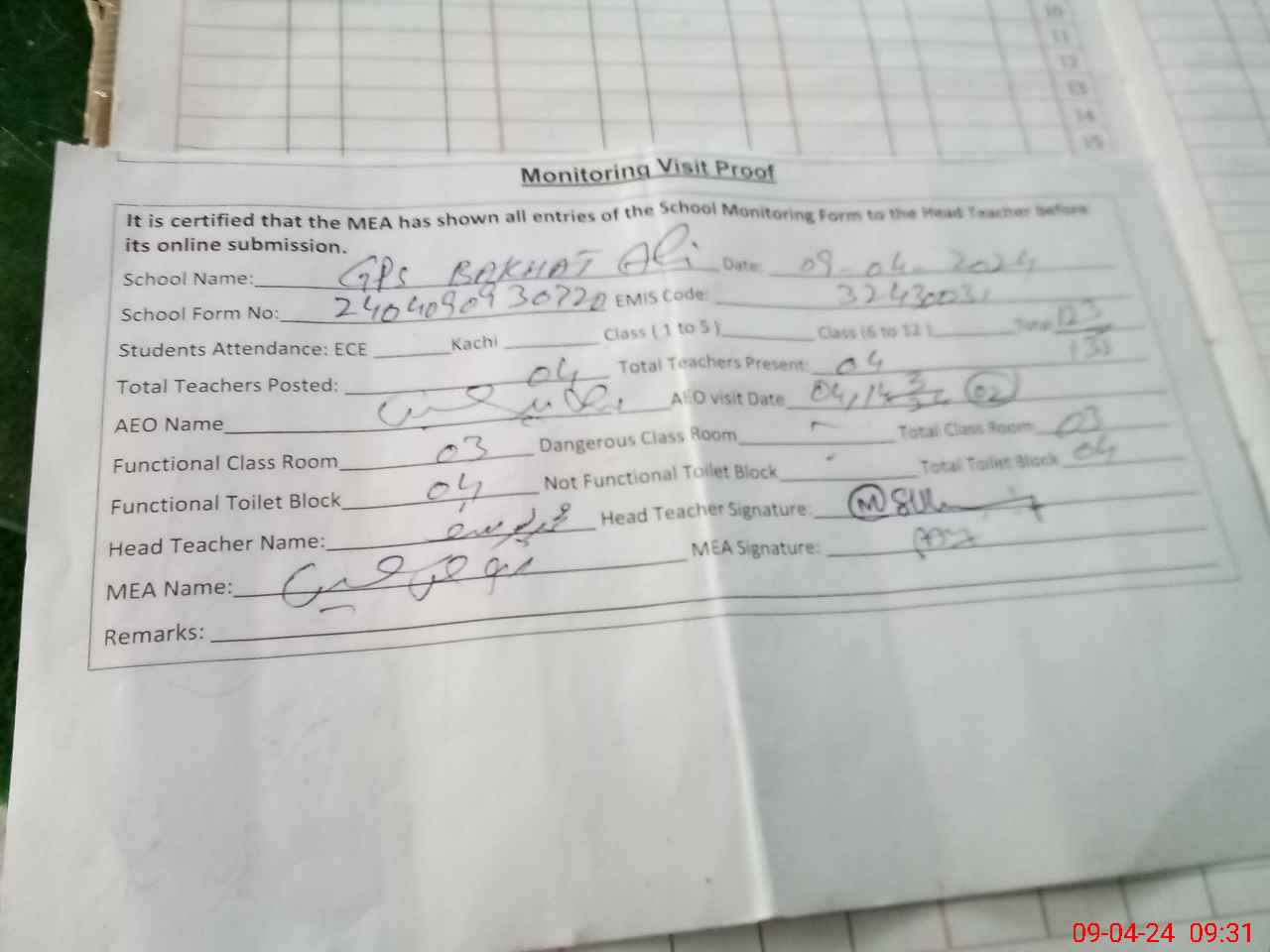 | EMIS Code: 32430031 | Name of School: GPS BAKHAT ALI | |||
