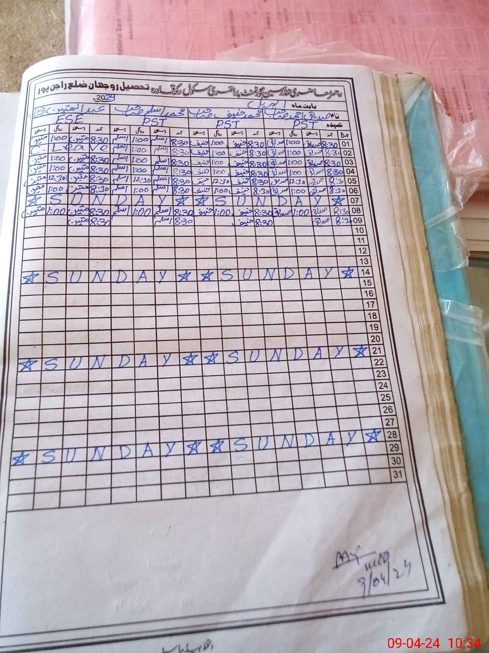 | Name: SA**** AH**** Designation: (School Headmaster's/Headmistress's) PST Phone/Cell Number: 03**** |