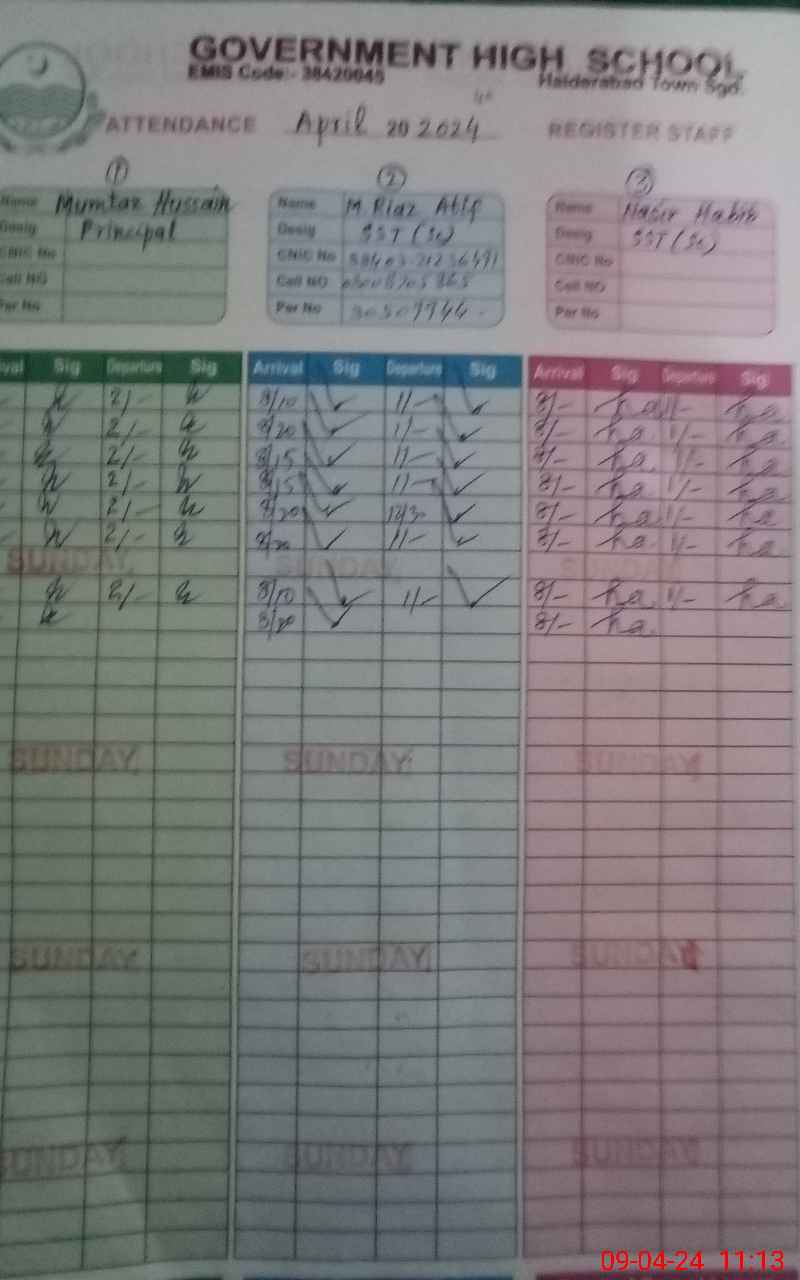 | CNIC | Full Name | Designation | R/C | Absence During Last Calender Month |
