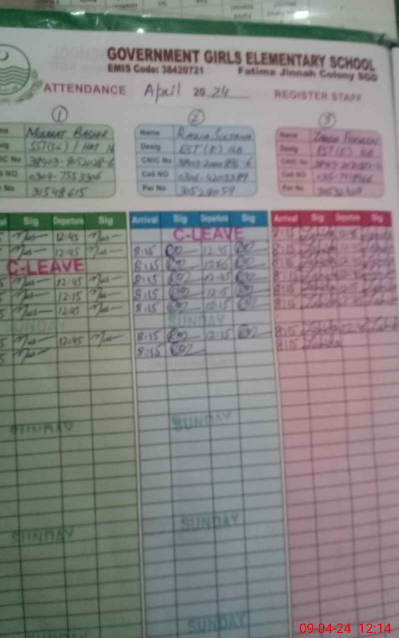 | EMIS Code: 38420721 | Name of School: GGES FATIMA JINNAH COLONY | |||