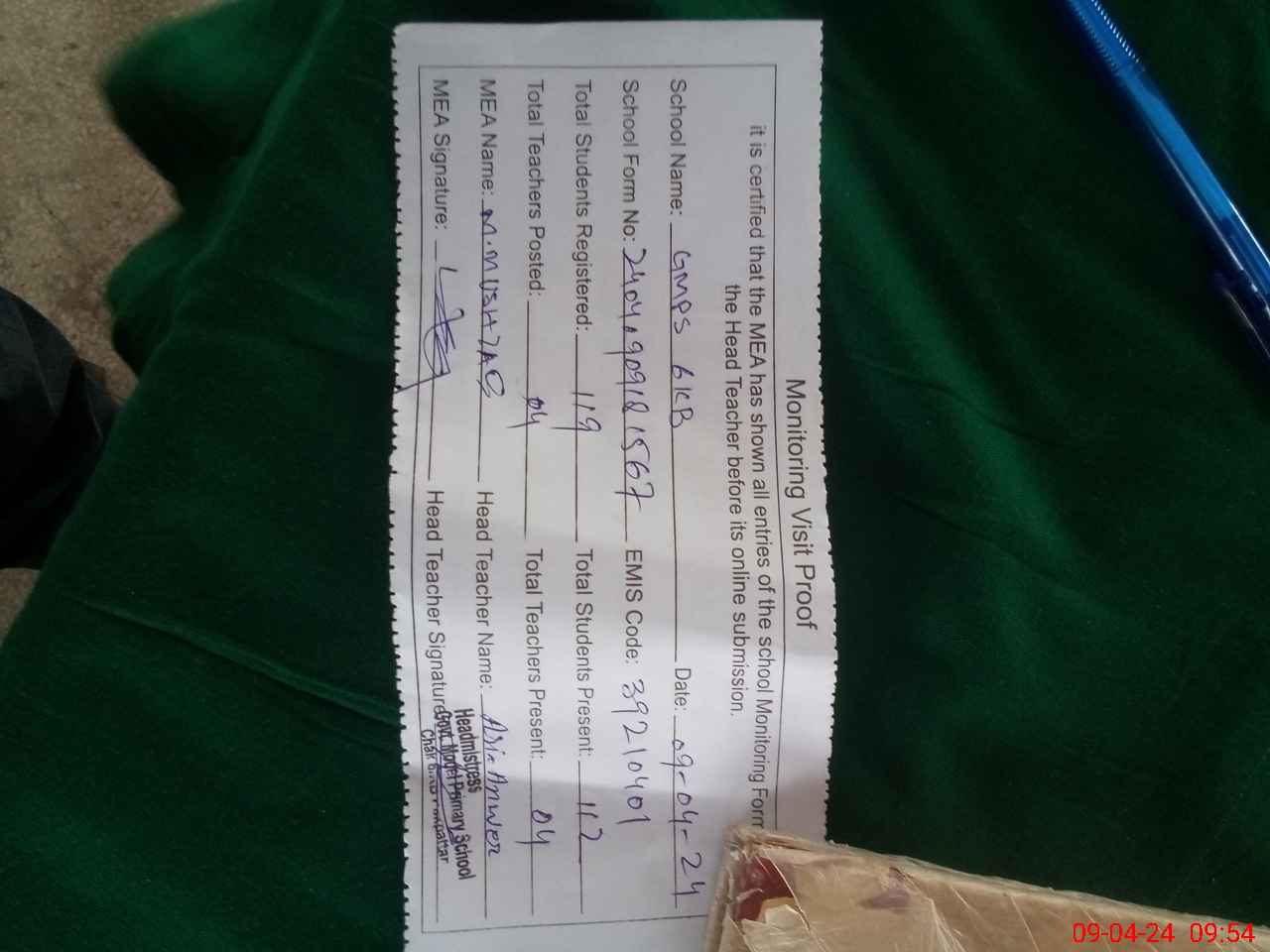 | EMIS Code: 39210401 | Name of School: GMPS CHAK NO 6-KB | |||