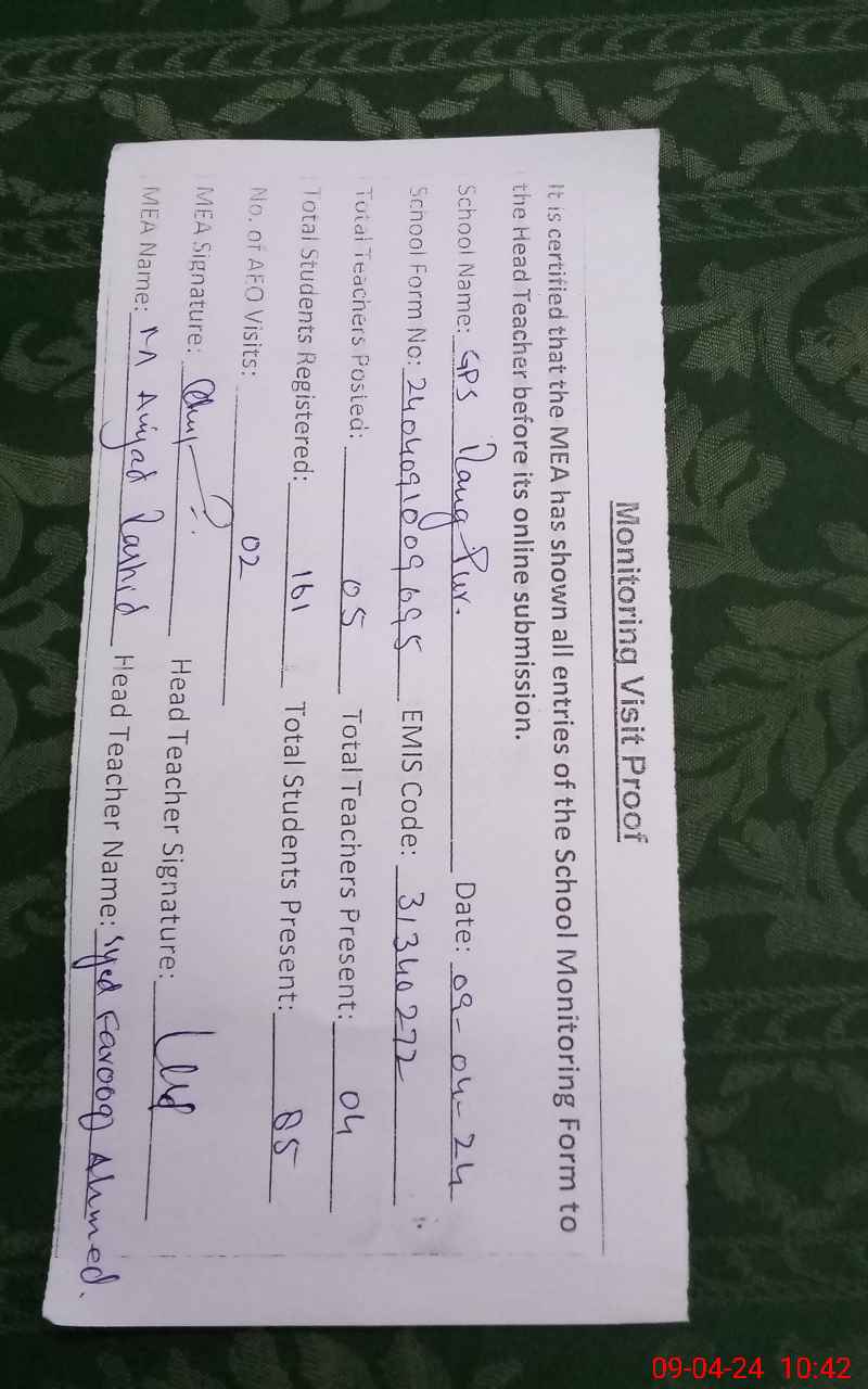 | EMIS Code: 31340272 | Name of School: GPS RANG PUR | |||