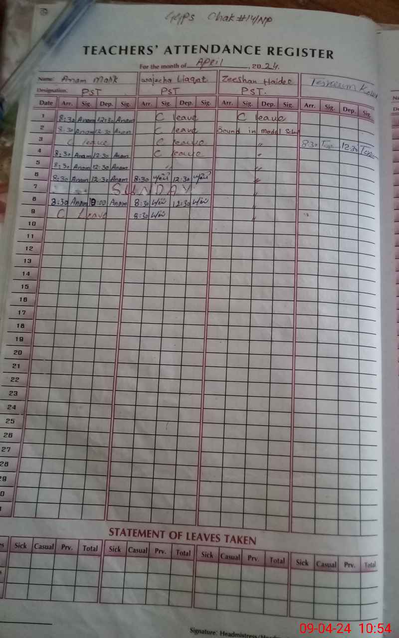 | Name: An**** Ma**** Designation: (School Headmaster's/Headmistress's) PST Phone/Cell Number: 03**** |