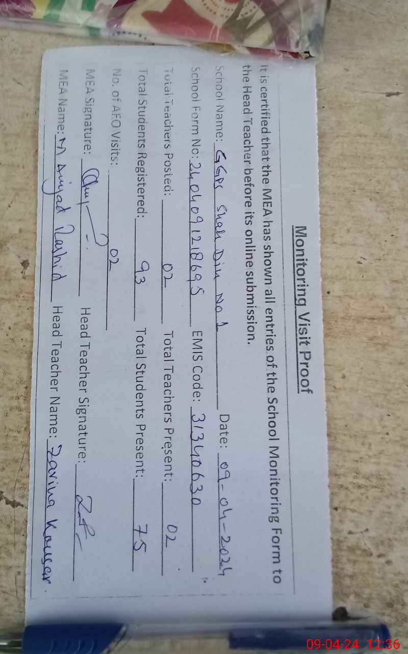 | EMIS Code: 31340630 | Name of School: GGPS SHAH DIN NO.1 | |||