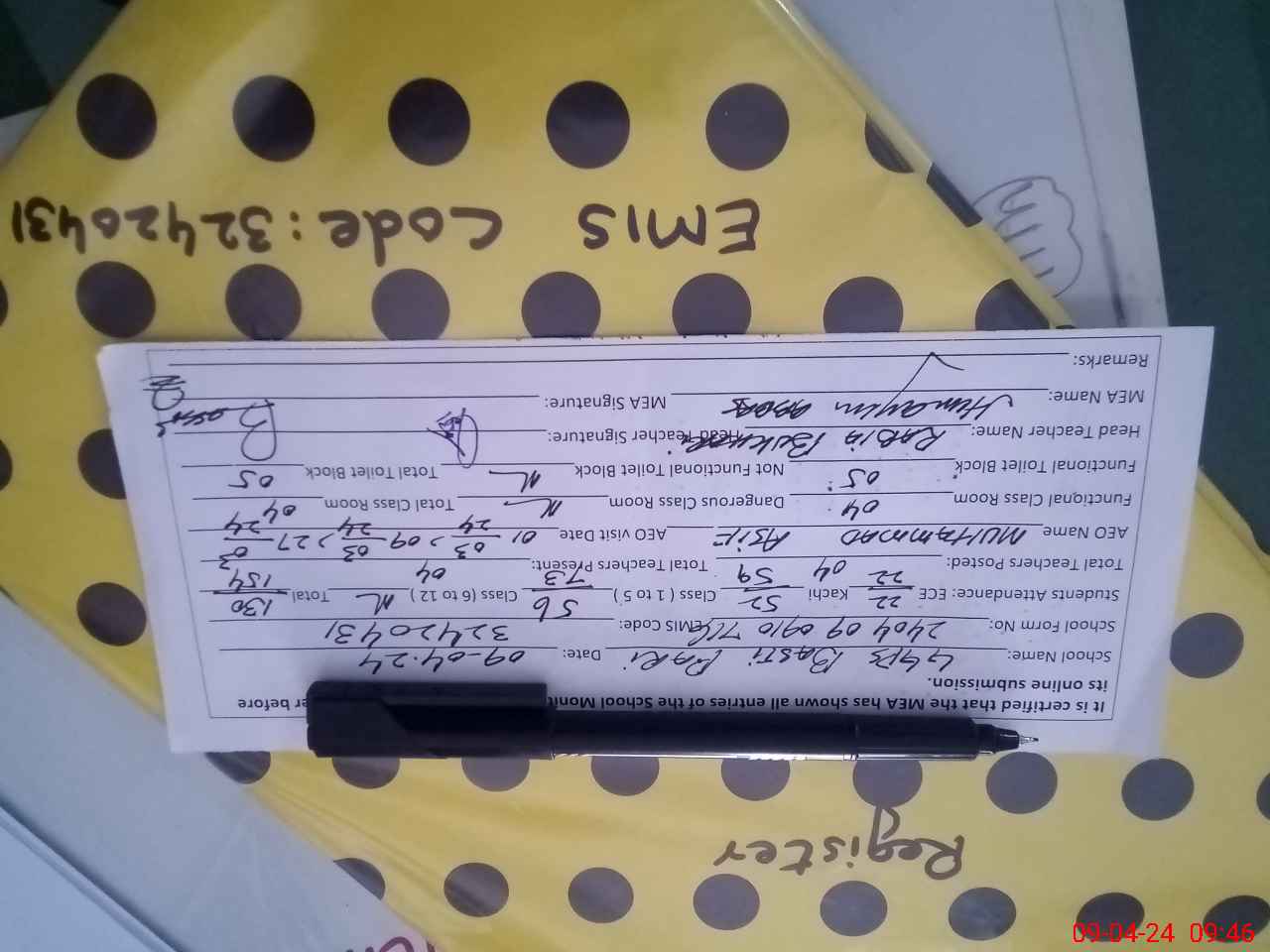 | Certified that this School was Inspected by the Undersigned MEA/DMO Today and the Information Stated Above is as Per Record. | |||||