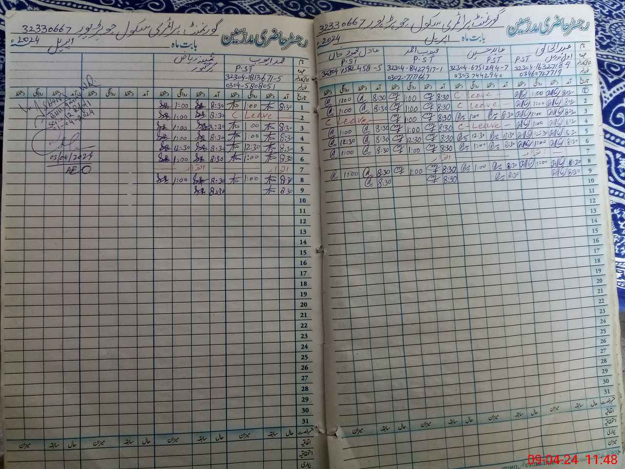 | Name: AB**** KH**** Designation: (School Headmaster's/Headmistress's) PST/PTC/JV Phone/Cell Number: 03**** |