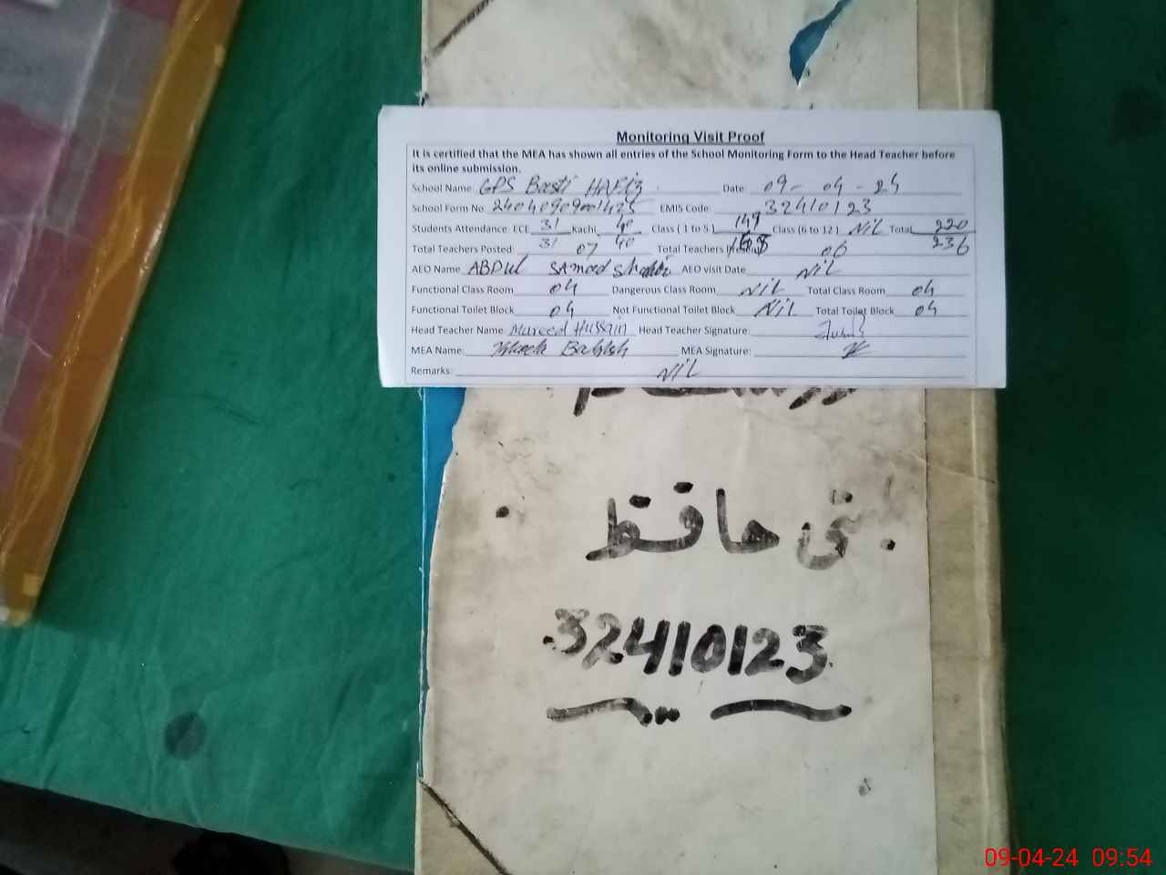 | EMIS Code: 32410123 | Name of School: GPS BASTI HAFIZ | |||