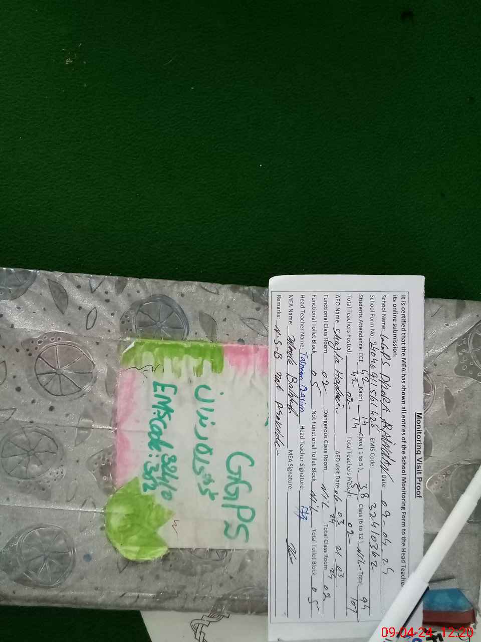 | EMIS Code: 32410362 | Name of School: GGPS DHORA RINDAN | |||