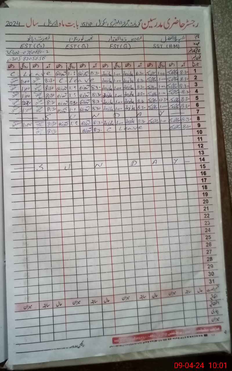 | Name: SH**** AF**** Designation: (School Headmaster's/Headmistress's) S.S.T.(GEN) Phone/Cell Number: 03**** |