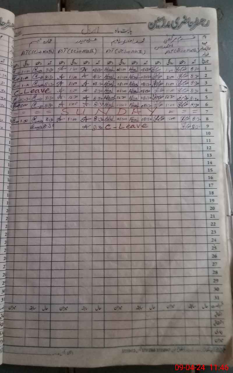 | CNIC | Full Name | Designation | R/C | Absence During Last Calender Month |