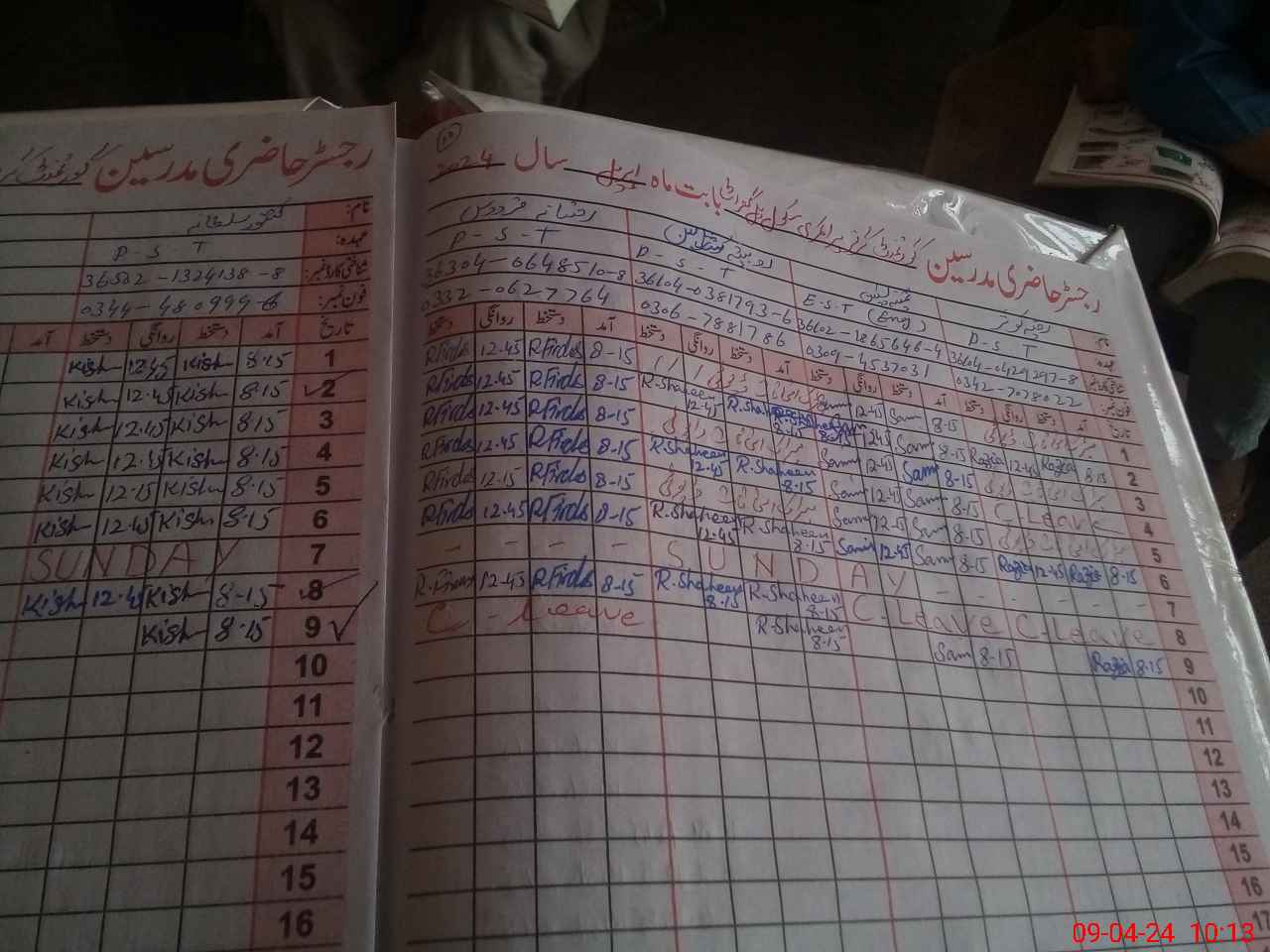 | CNIC | Full Name | Designation | R/C | Absence During Last Calender Month |