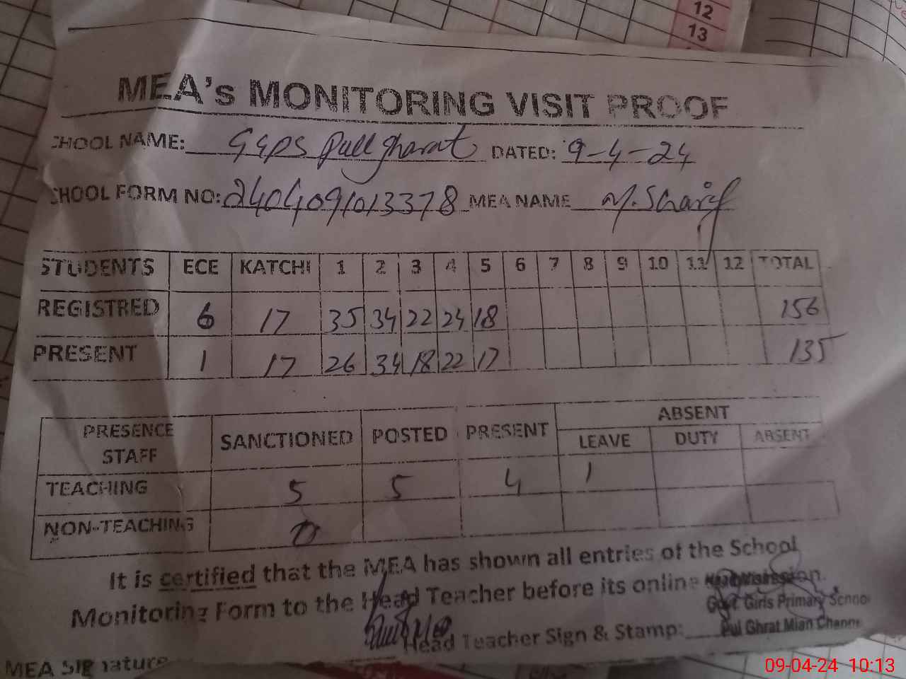 | EMIS Code: 36430381 | Name of School: GGPS PULL GHARAT, TULAMBA | |||