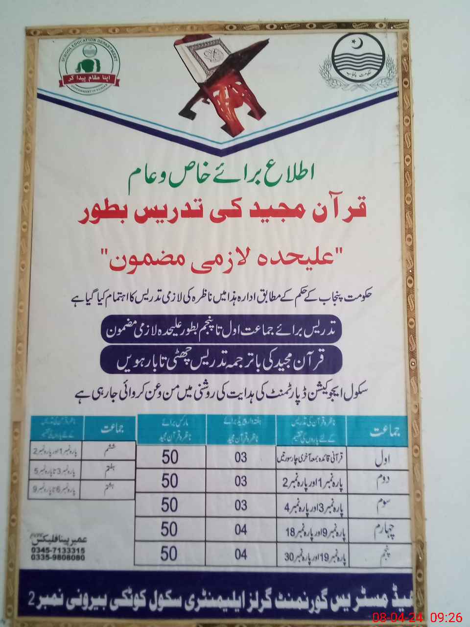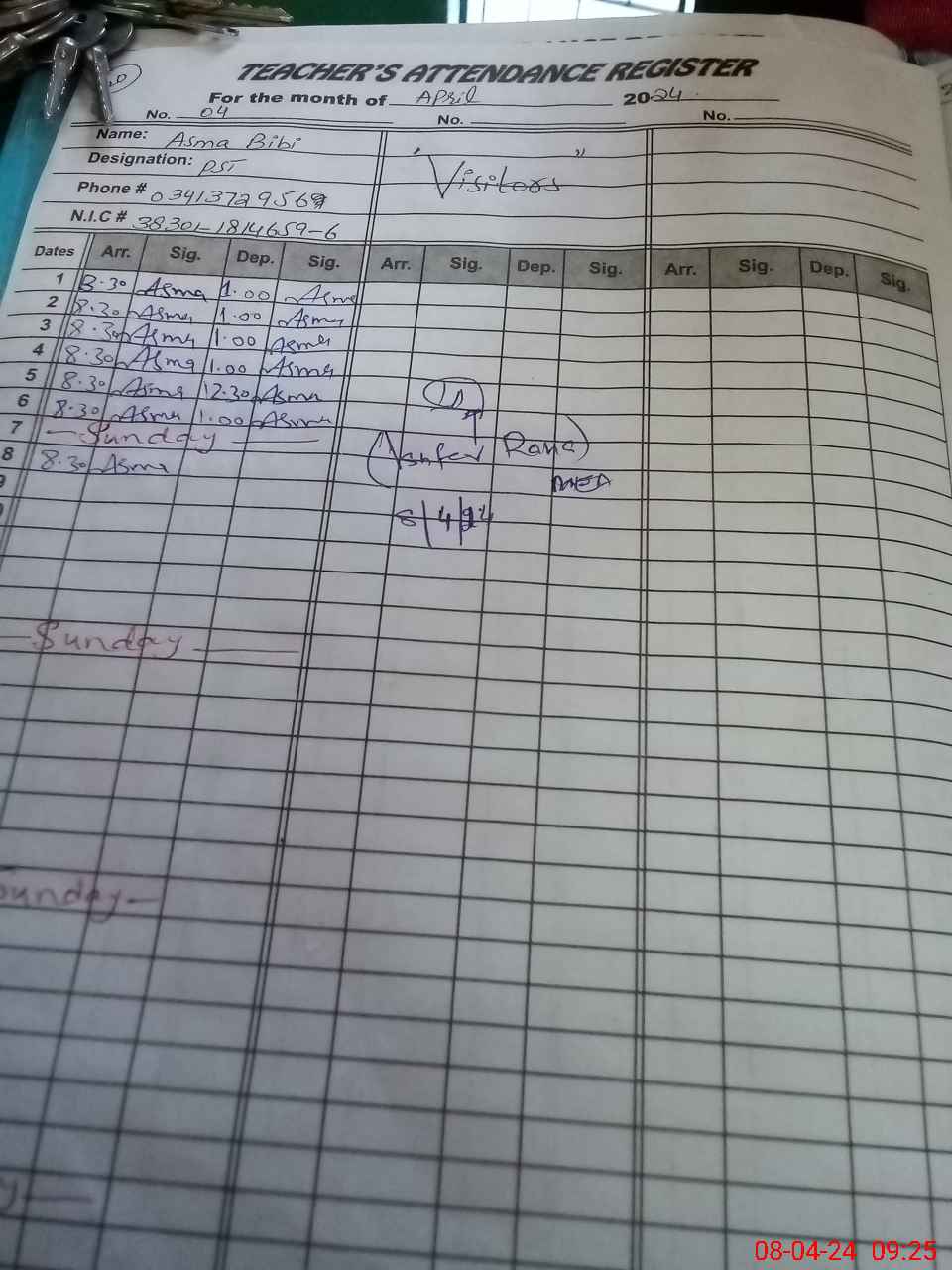 | Name: Um**** Designation: (School Headmaster's/Headmistress's) Sse Nath Phone/Cell Number: 03**** |