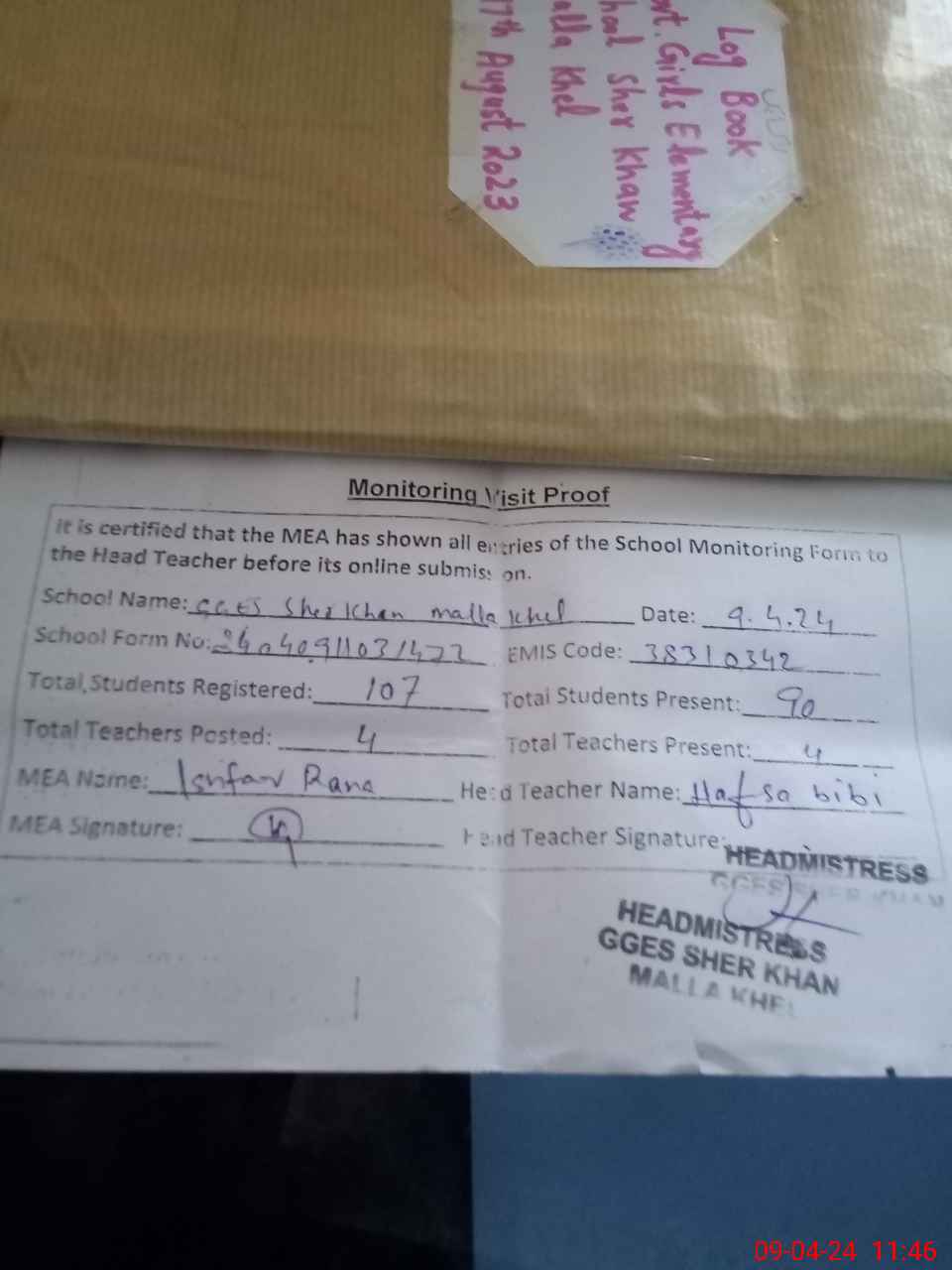 | EMIS Code: 38310342 | Name of School: GGES SHER KHAN MALLA KHEL | |||