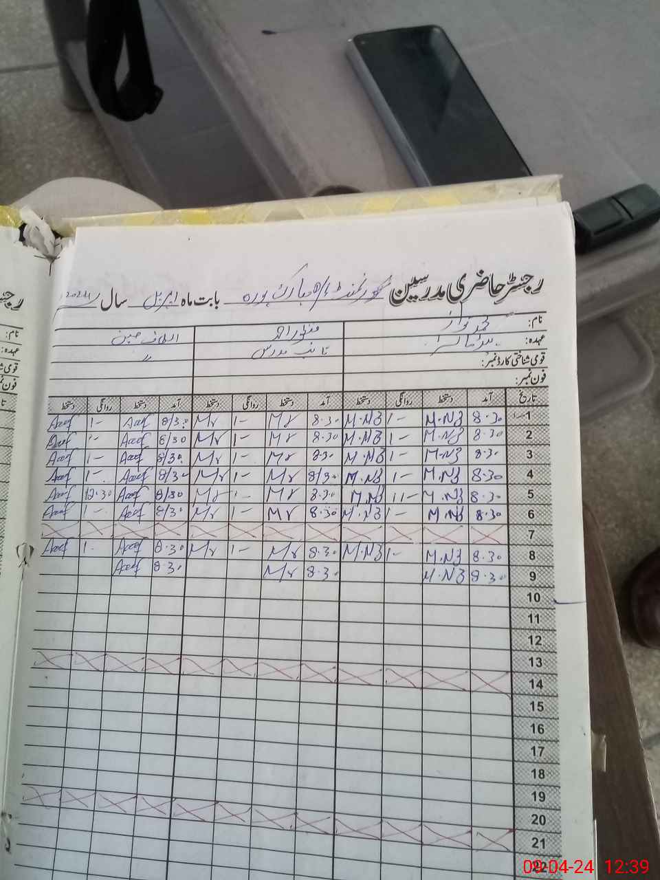 | CNIC | Full Name | Designation | R/C | Absence During Last Calender Month |