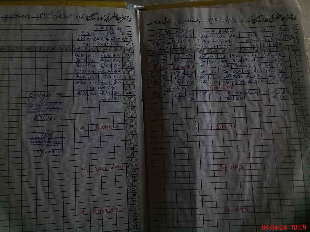 | CNIC | Full Name | Designation | R/C | Absence During Last Calender Month |