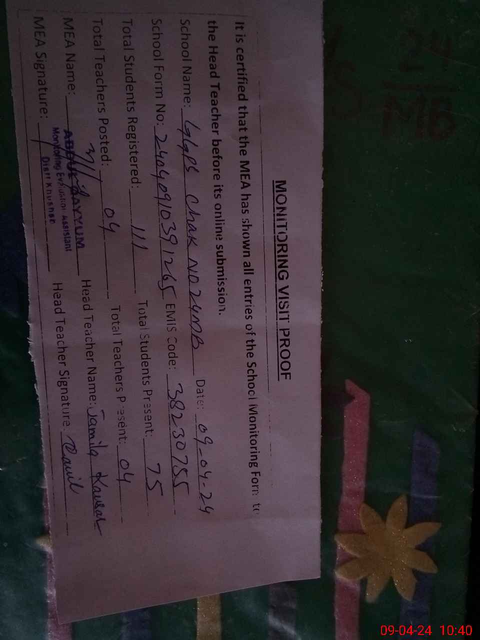| EMIS Code: 38230755 | Name of School: GGPS CHAK NO 24 MB | |||