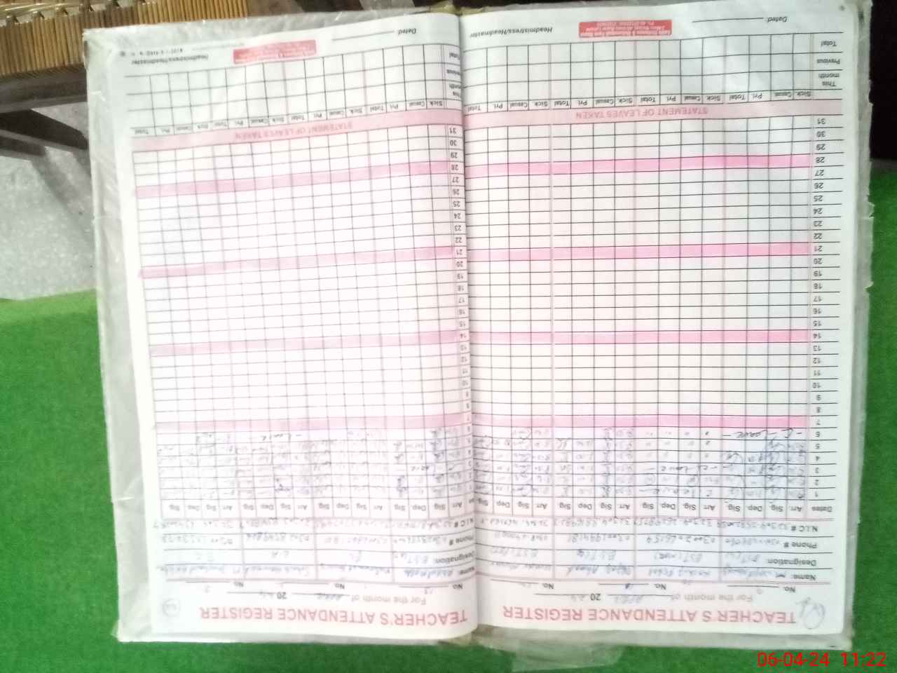 | CNIC | Full Name | Designation | R/C | Absence During Last Calender Month |