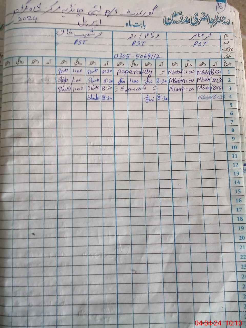| Name: MU**** SA**** Designation: (School Headmaster's/Headmistress's) PST Phone/Cell Number: 03**** |