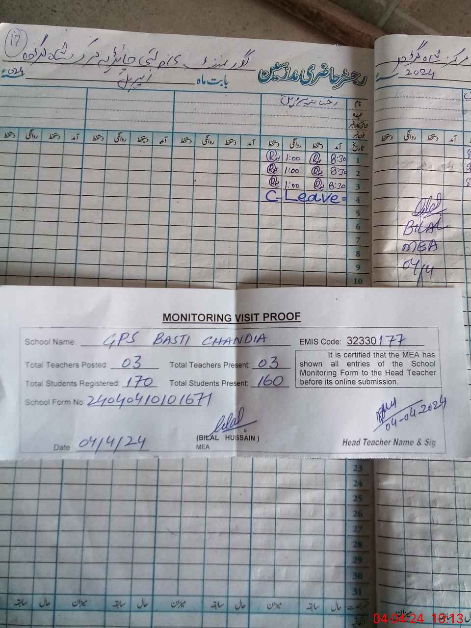 | EMIS Code: 32330177 | Name of School: GPS BASTI CHANDIA | |||