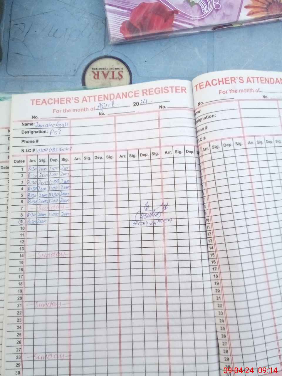 | Name: TA**** RA**** Designation: (School Headmaster's/Headmistress's) Pst Phone/Cell Number: 03**** |
