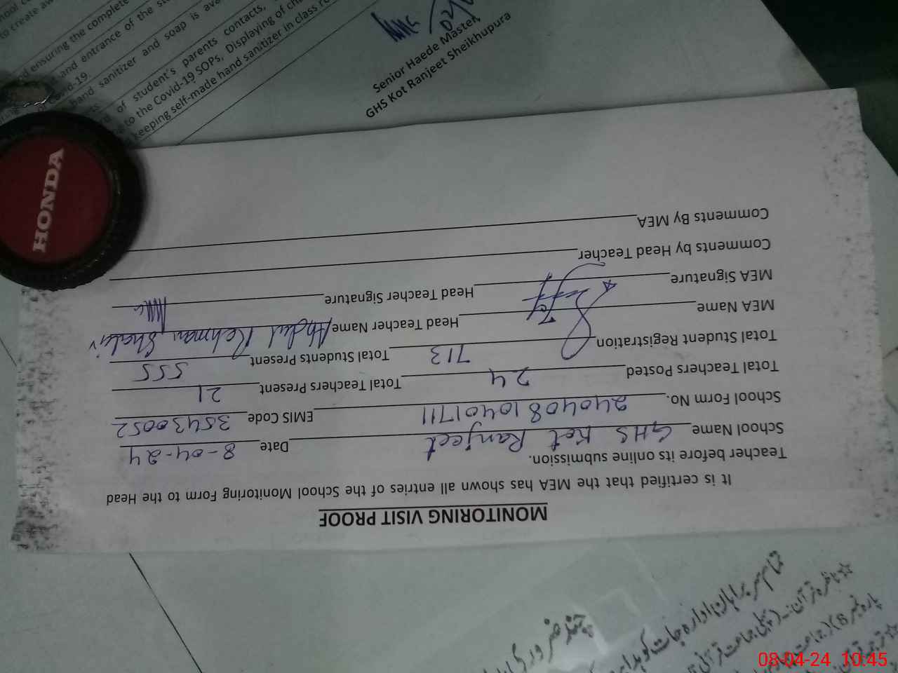 | EMIS Code: 35430052 | Name of School: GHS KOT RANJEET (SKP) | |||