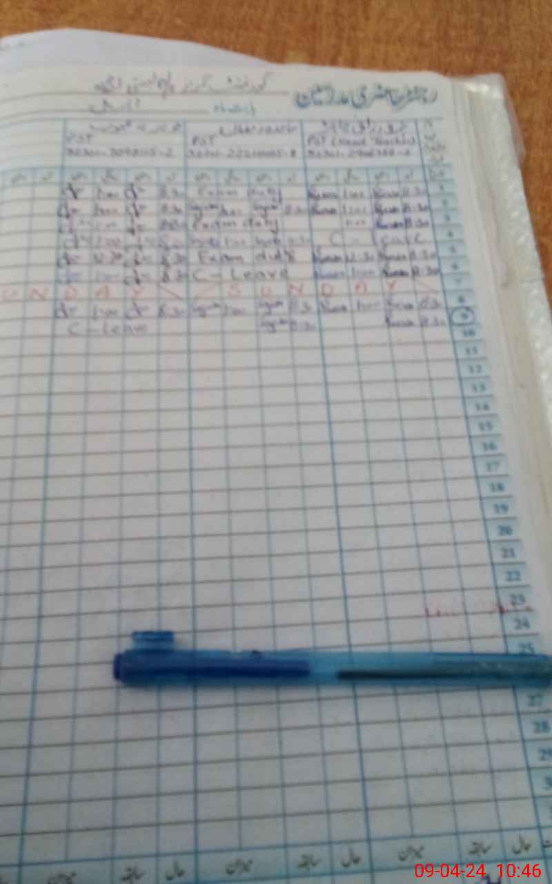 | CNIC | Full Name | Designation | R/C | Absence During Last Calender Month |