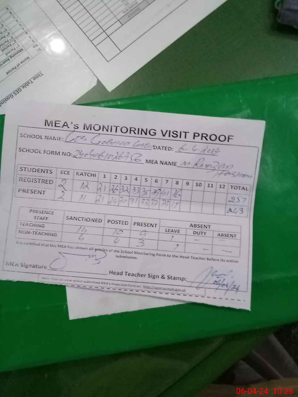 | EMIS Code: 36410081 | Name of School: GES GOBIND GARH, ABDUL HAKIM | |||
