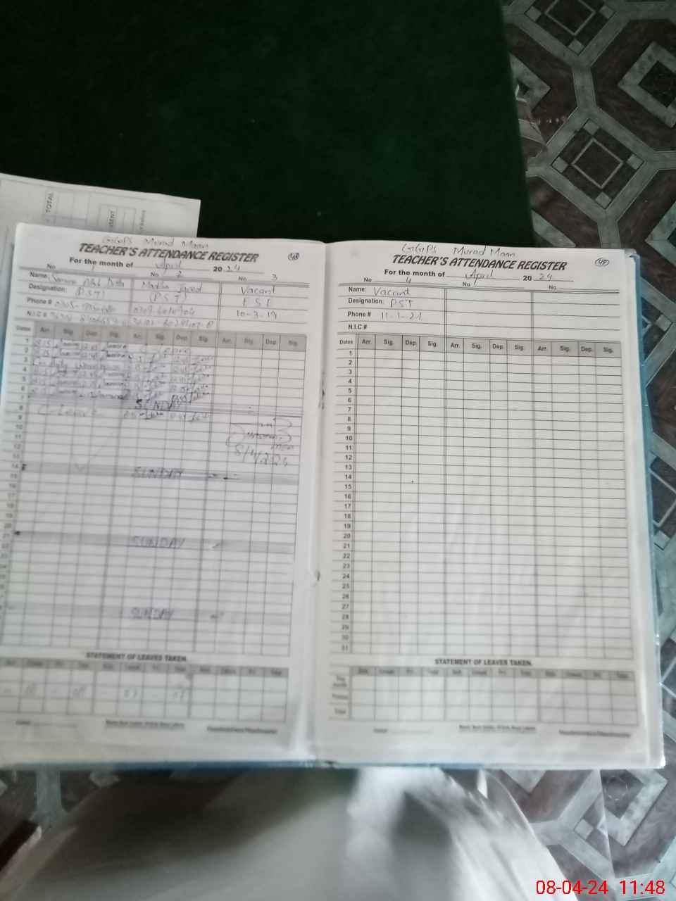 | CNIC | Full Name | Designation | R/C | Absence During Last Calender Month |