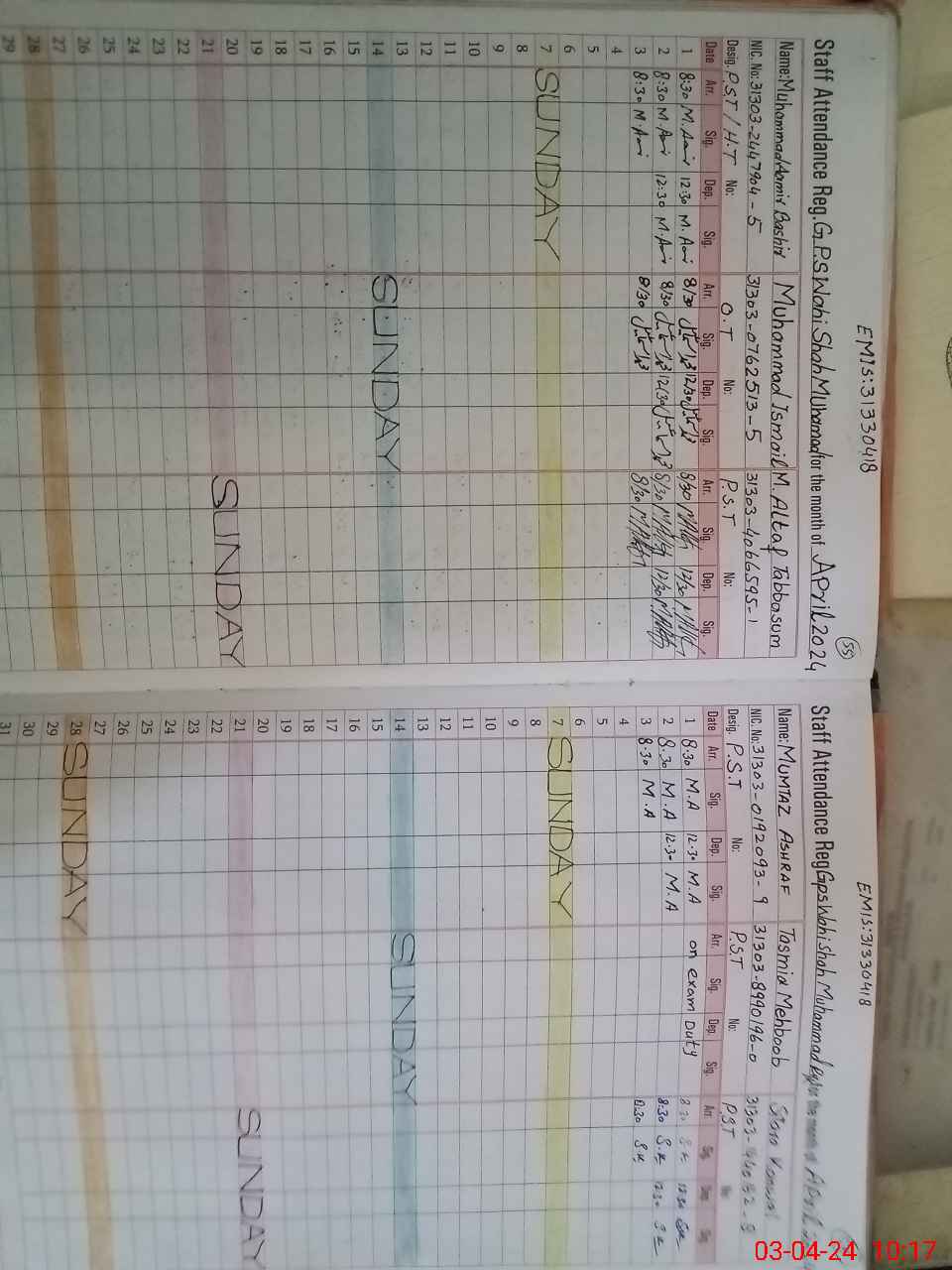 | 31**** | Ta**** Me**** | PST | Regular | 0 | 0 | 0 | 0 | 0 | 0 | 0 | 0 | 0 | Exam Duty |