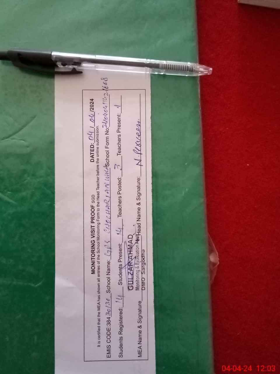 | EMIS Code: 38430130 | Name of School: GPS CHOCHRIAN WALA | |||