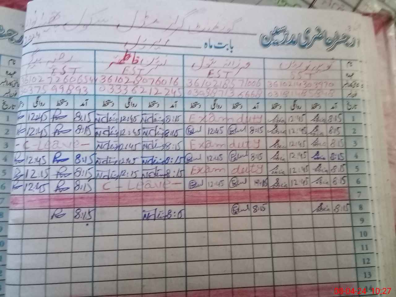 | Name: FA**** BA**** Designation: (School Headmaster's/Headmistress's) EST GEN Phone/Cell Number: 03**** |