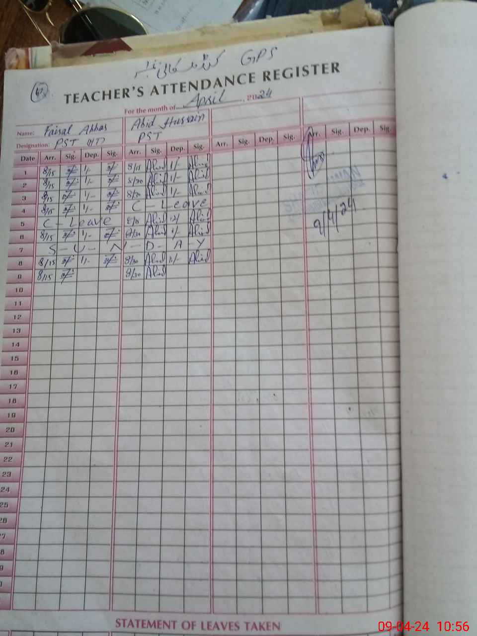 | Leave | Duty | Absent | Maternity | Medical | Ex- Pak |