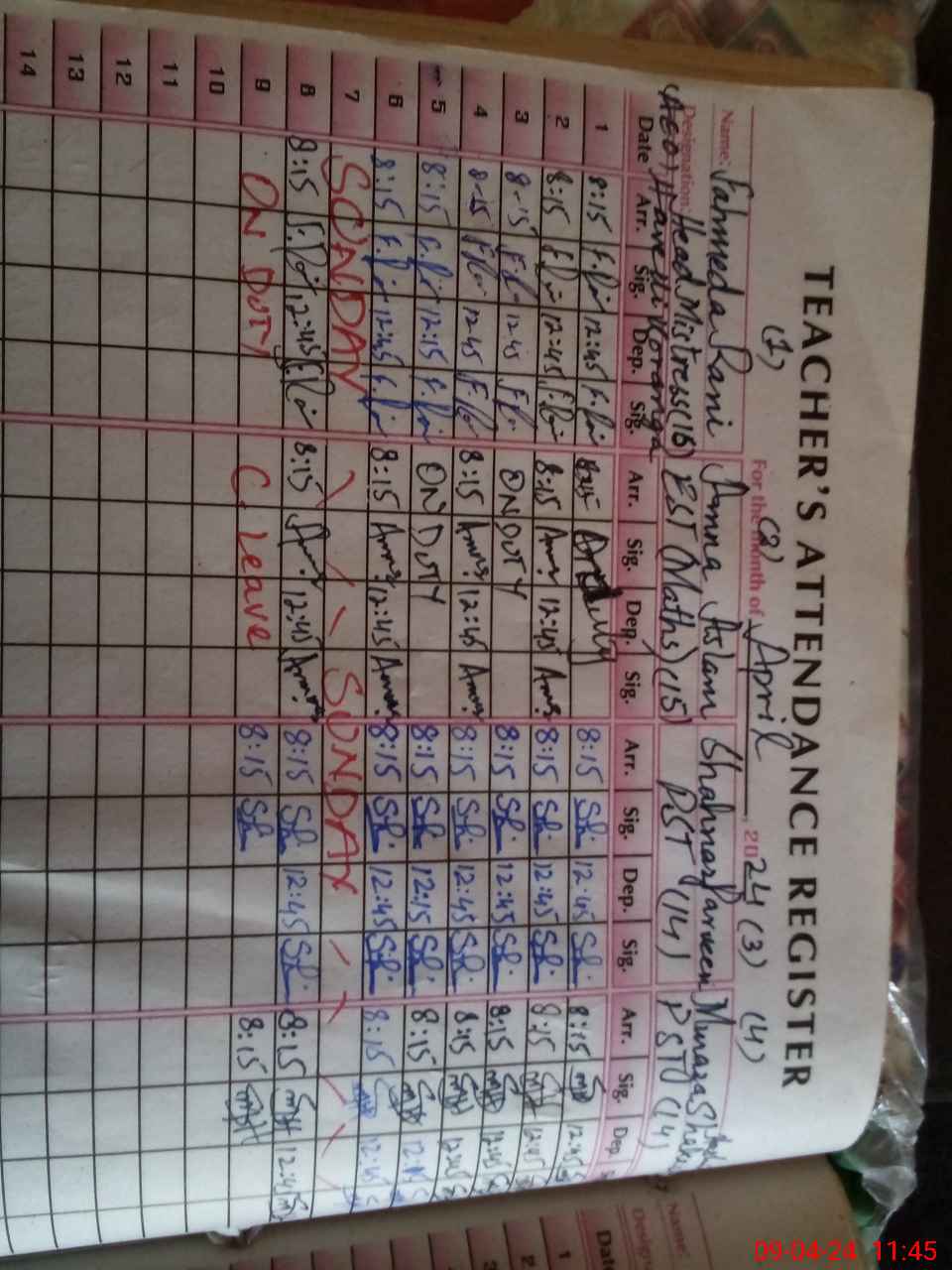 | CNIC | Full Name | Designation | R/C | Absence During Last Calender Month |