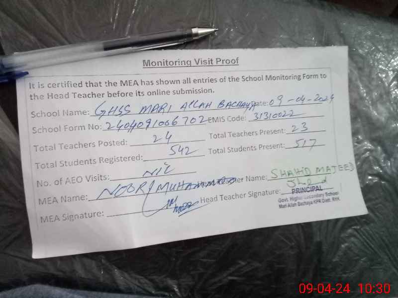 | EMIS Code: 31310022 | Name of School: GHSS MARI ALLAH BACHAYA | |||
