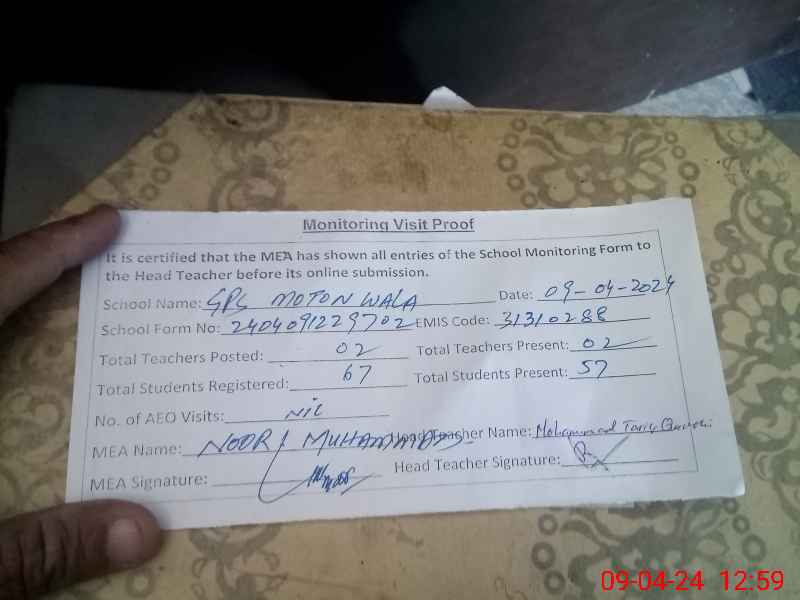 | EMIS Code: 31310288 | Name of School: GPS MOTTA WALA | |||