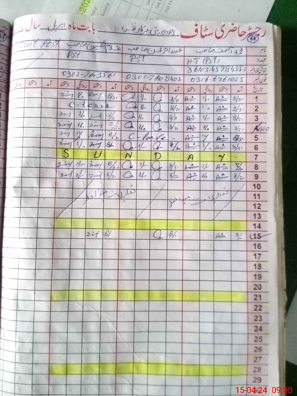 | Name: Ub**** UrRe**** Designation: (School Headmaster's/Headmistress's) PST Phone/Cell Number: 03**** |