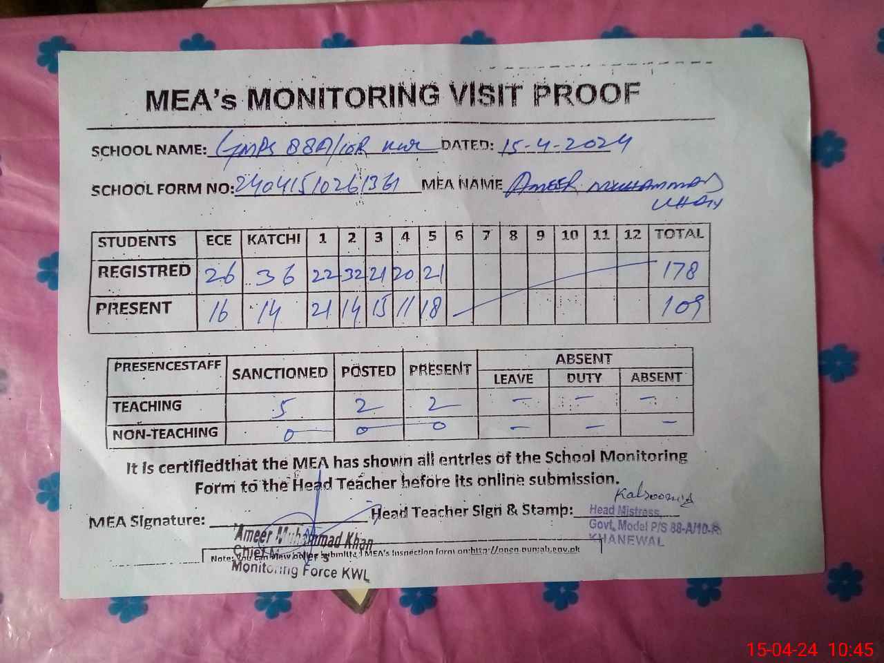 | EMIS Code: 36420429 | Name of School: GMPS 88-A/10-R, KHANEWAL | |||