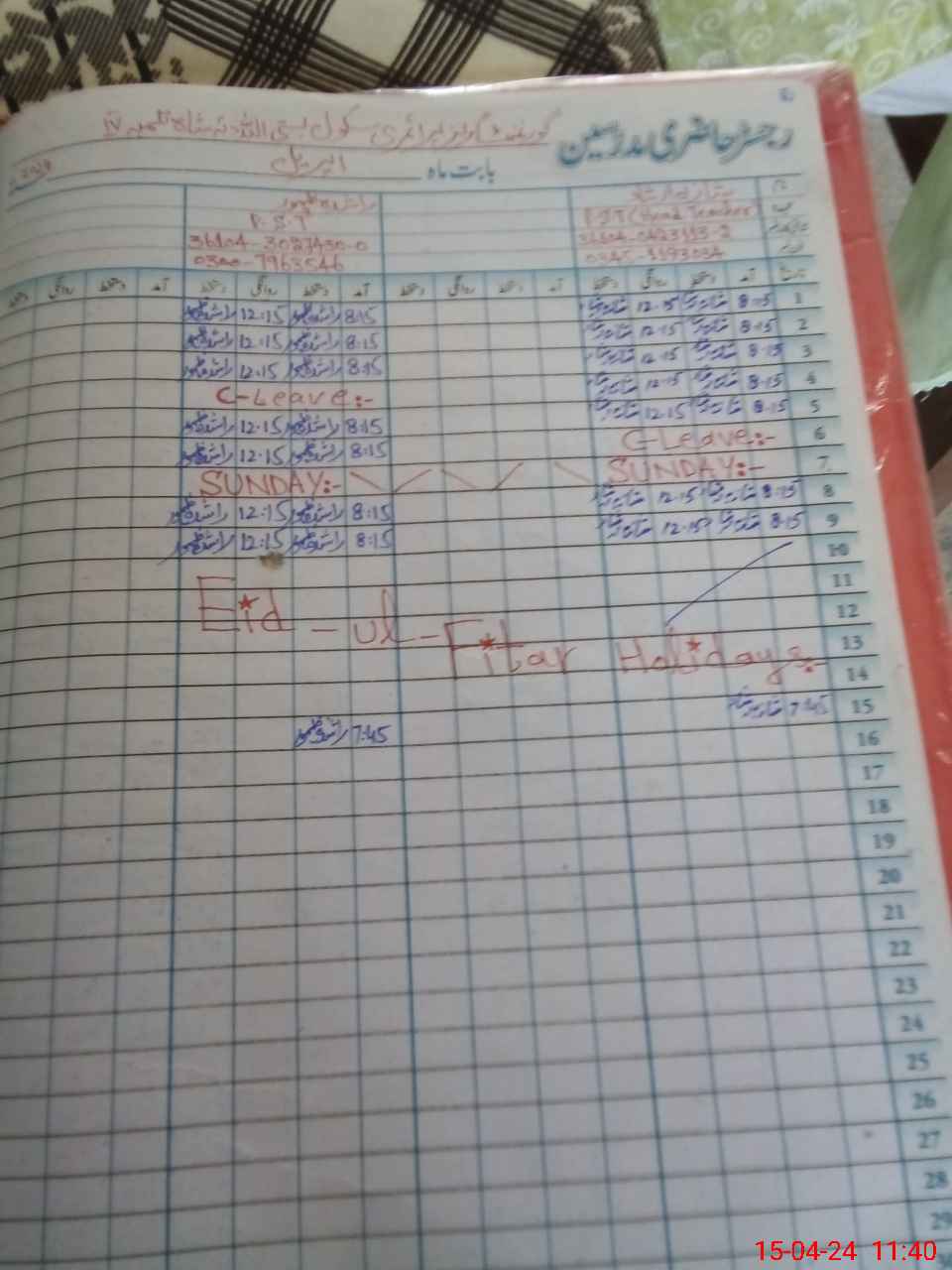 | Name: SH**** IR**** Designation: (School Headmaster's/Headmistress's) PST/PTC/JV Phone/Cell Number: 03**** |