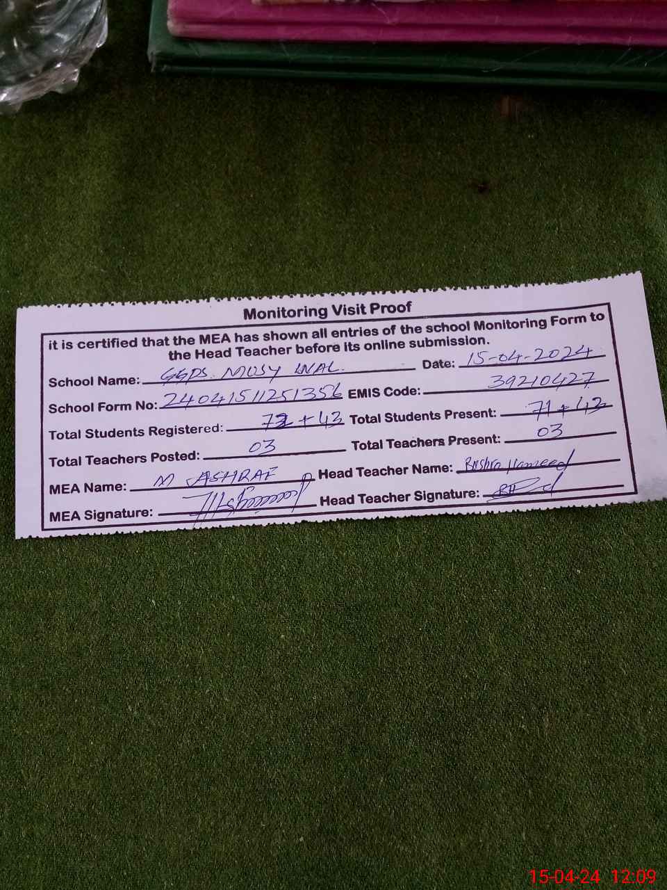 | Certified that this School was Inspected by the Undersigned MEA/DMO Today and the Information Stated Above is as Per Record. | |||||