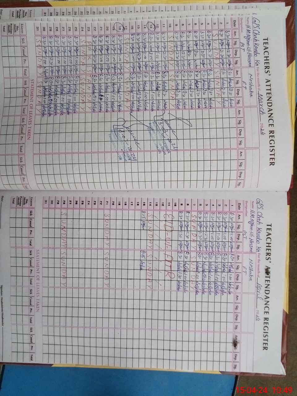 | Remarks (Use Separate Page if Required): Students and teachers attendance register record is not maintained Boundary wall hight is less than required | |||||