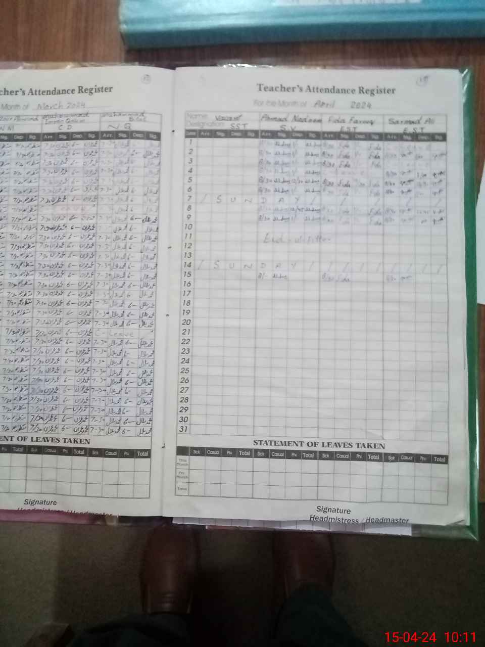 | Leave | Duty | Absent | Maternity | Medical | Ex- Pak |