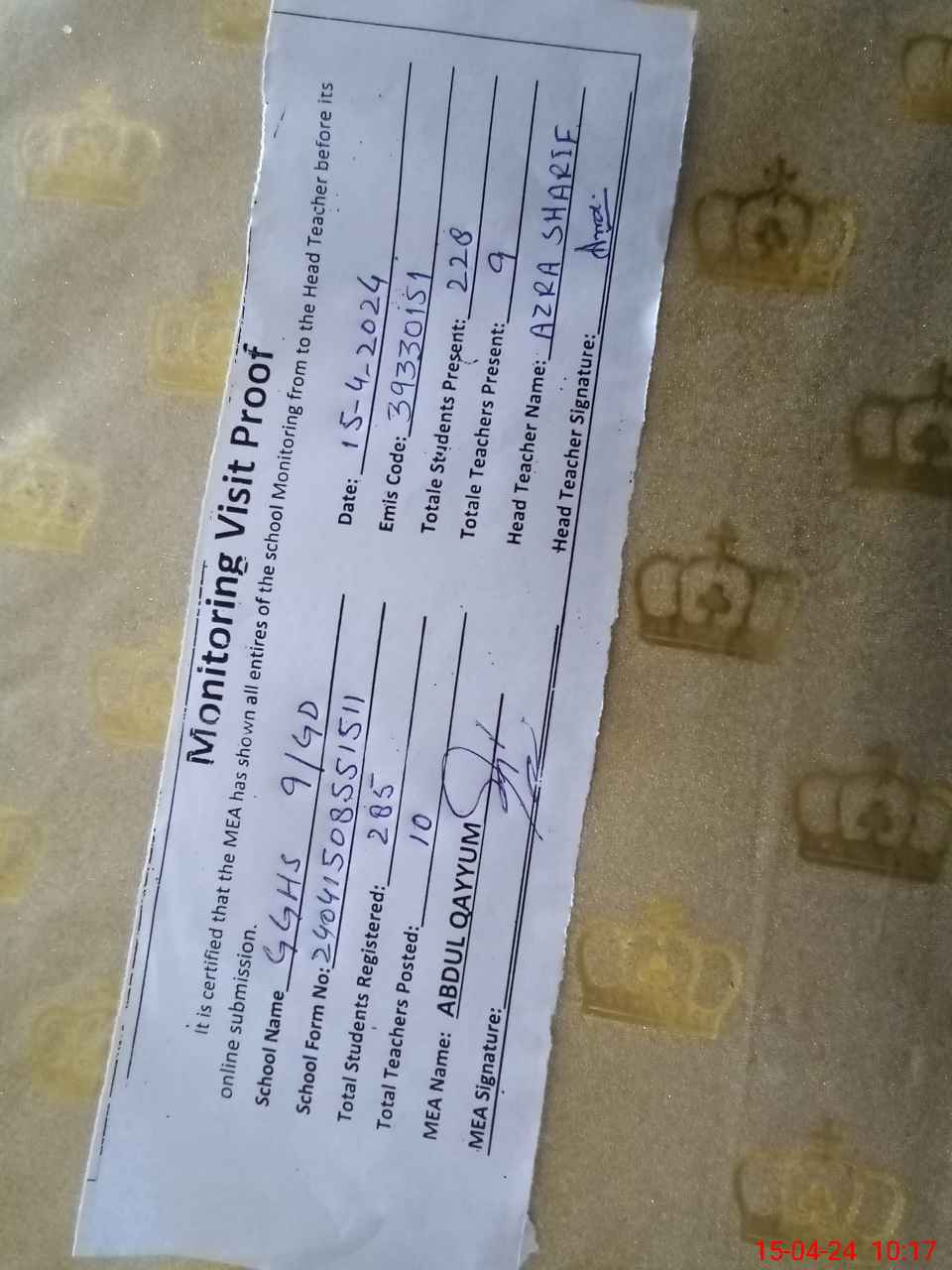 | EMIS Code: 39330151 | Name of School: GGHS CHAK NO.9/GD | |||