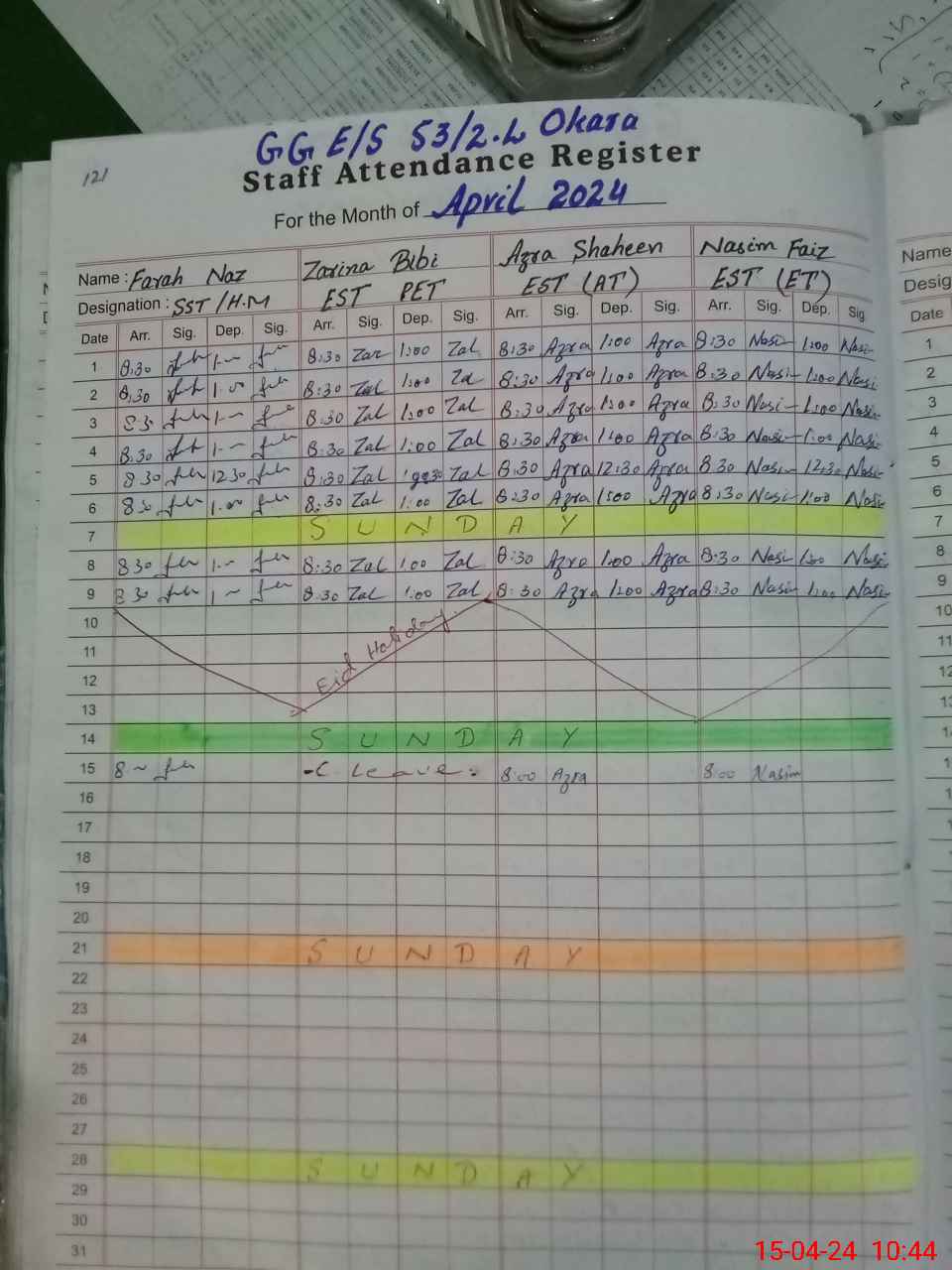| Leave | Duty | Absent | Maternity | Medical | Ex- Pak |