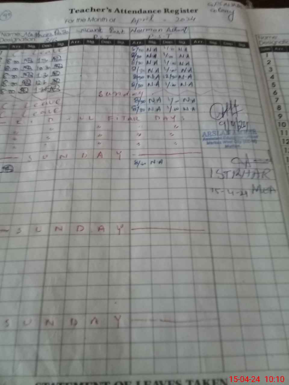 | Leave | Duty | Absent | Maternity | Medical | Ex- Pak |
