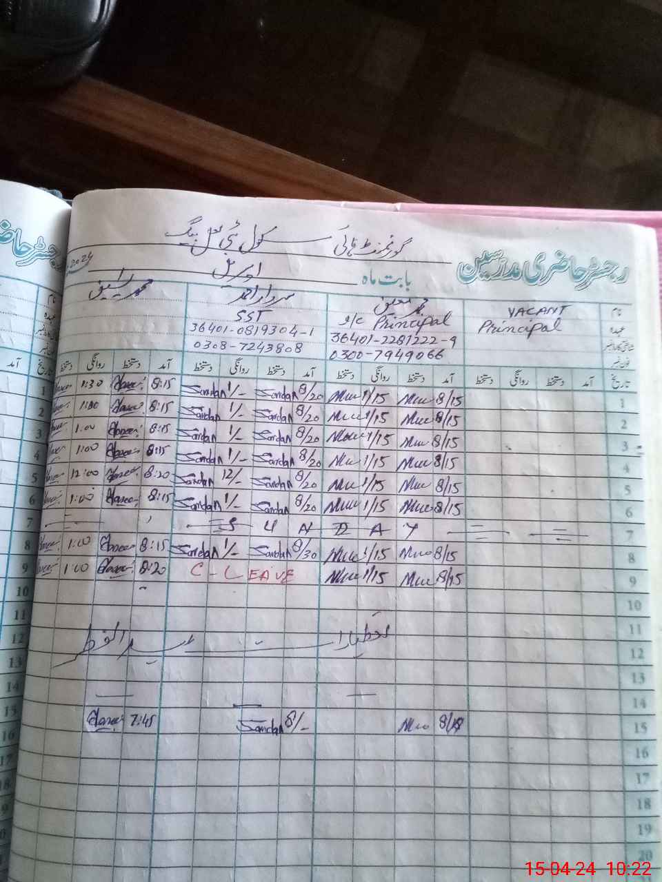 | Name: Mu**** Mu**** Kh**** Designation: (School Headmaster's/Headmistress's) Principal Phone/Cell Number: 03**** |