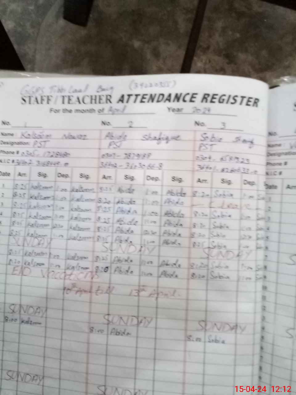 | Name: KA**** NA**** Designation: (School Headmaster's/Headmistress's) PST Phone/Cell Number: 03**** |